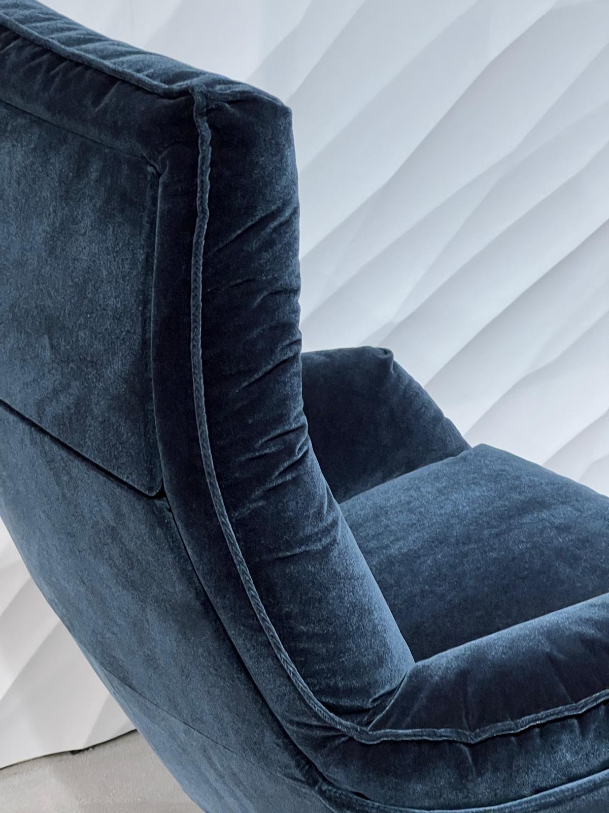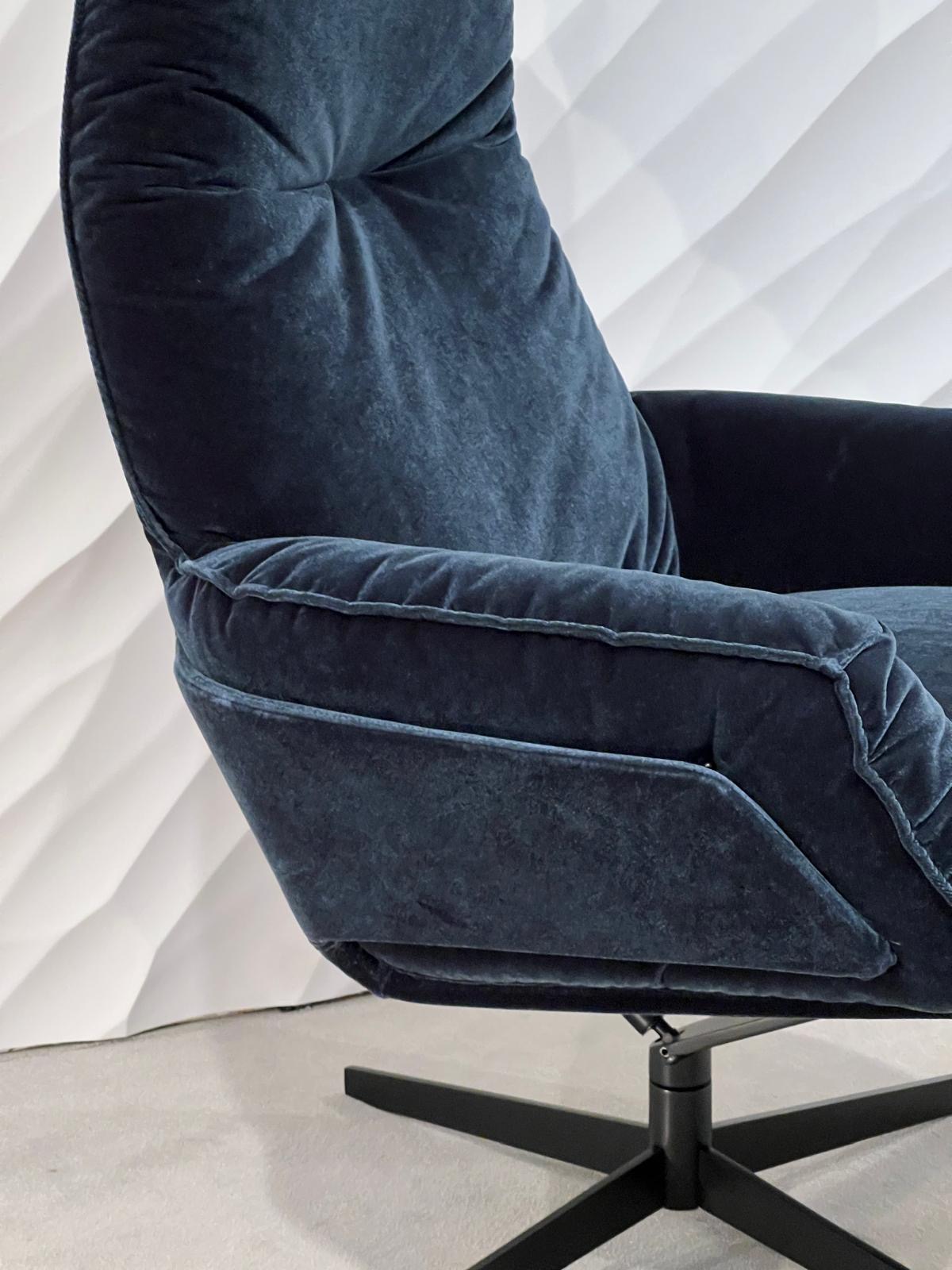 Der DARON Sessel von den Bielefelder WERKSTÄTTEN verbindet zeitlose Eleganz mit höchstem Sitzkomfort. Hier gefertigt mit einem besonders weichen Stoffbezug wirkt er einladend und modern. Die weich gepolsterte Form und die exzellente Verarbeitung machen DARON zu einem stilvollen Statement für anspruchsvolle Wohnbereiche. Der Preis versteht sich inklusive Hocker.