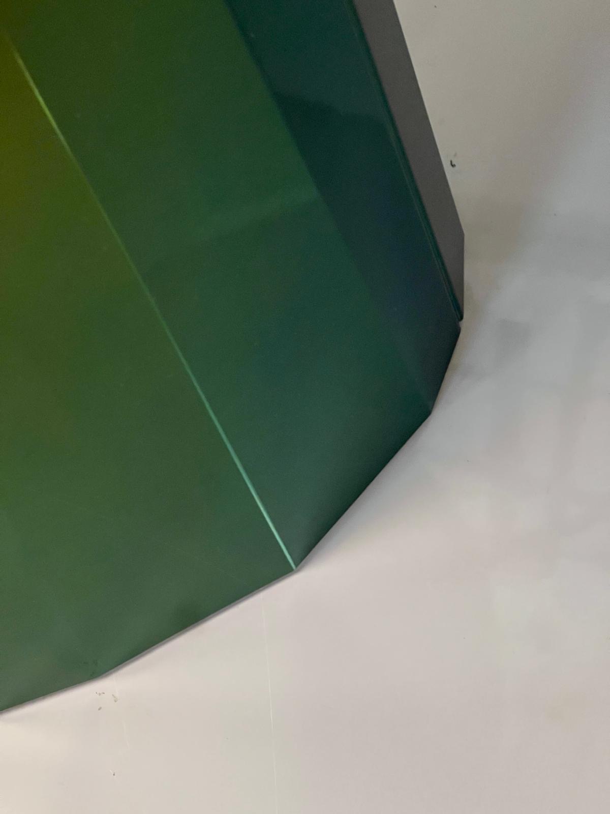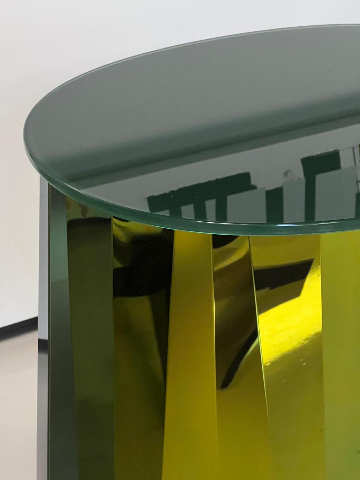 Der Beistelltisch PLI von ClassiCon ist ein skulpturales Designobjekt, das zeitgenössische Eleganz mit außergewöhnlicher Materialität verbindet. Entworfen von der französischen Designerin Victoria Wilmotte, zeichnet sich Pli durch seinen facettierten Edelstahlfuß aus, dessen Faltungen an einen geschliffenen Edelstein erinnern und faszinierende Licht- und Farbreflexe erzeugen. Die ovale Tischplatte aus farbig lackiertem Kristallglas steht in reizvollem Kontrast zu der geometrischen Struktur des Untergestells und verleiht dem Beistelltisch eine harmonische Leichtigkeit.