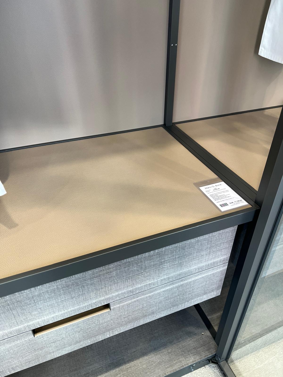 Dieser Kleiderschrankvon Poliform überzeugt durch moderne Farben und hochwertige Ausstattung. Die vier Drehtüren in reflektierendem Klarglas verleihen der Front eine moderne, ruhige Optik. Innen sind Rückwand und Böden in Tecnocover Nocciola (nussfarbenes Kunstleder) ausgeführt, der Korpus in Melamin Eiche Cenere, die Seiten sind matt lackiert. Zur Ausstattung gehören vier Schubladen, zwei Kleiderstangen sowie Glasböden in Fumé mit integrierter LED-Beleuchtung für eine funktionale, angenehme Ausleuchtung des Innenraums.