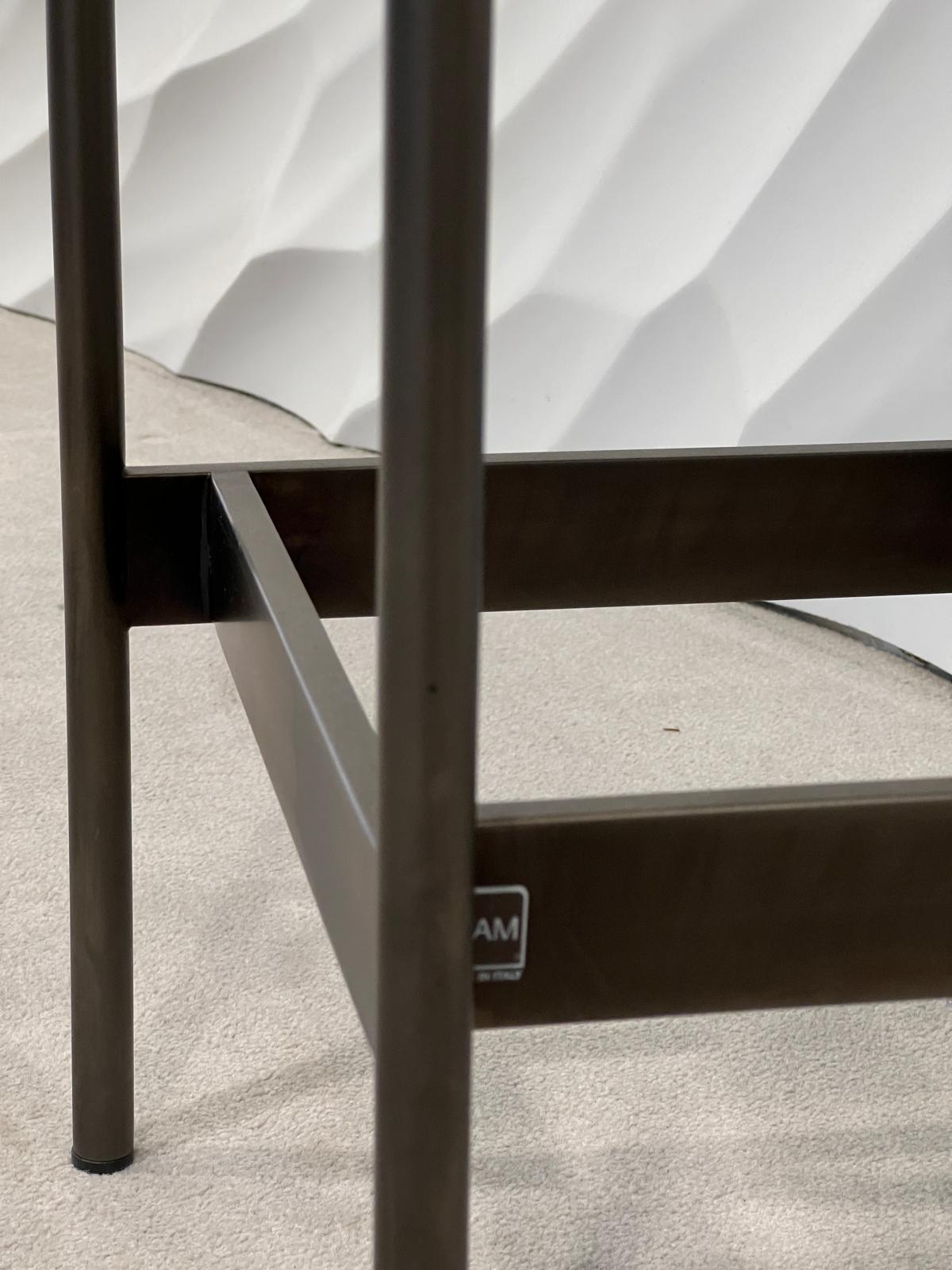 Der Beistelltisch Waves, entworfen von Roberto Palomba, überzeugt durch eine klare, moderne Formensprache und hochwertige Materialien. Das Gestell aus mattem titanfarbigem Metall verleiht dem Tisch eine leichte, stabile Basis, während die Tischplatte aus 23 mm dickem DV-Glas in Fumé für Tiefe und Eleganz sorgt. Waves ist ein vielseitiger, stilvoller Beisteller.